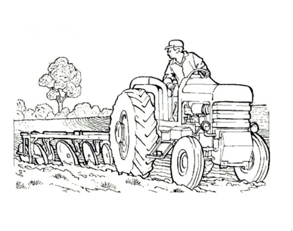 Трактор с плугом раскраска для детей