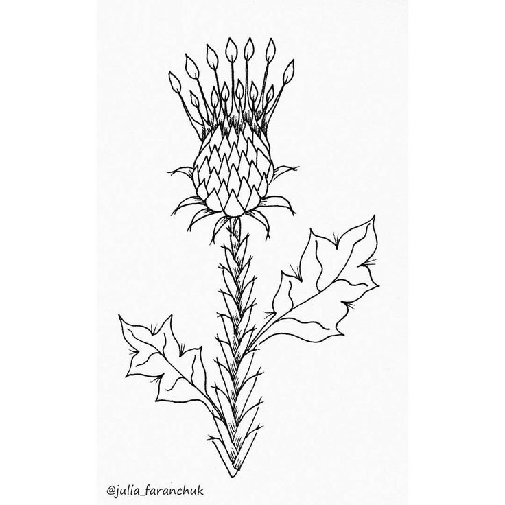 Чертополох черно белый рисунок