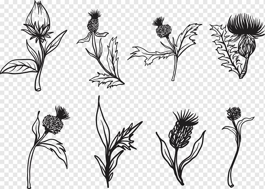 ![Чертополох черно белый рисунок]()