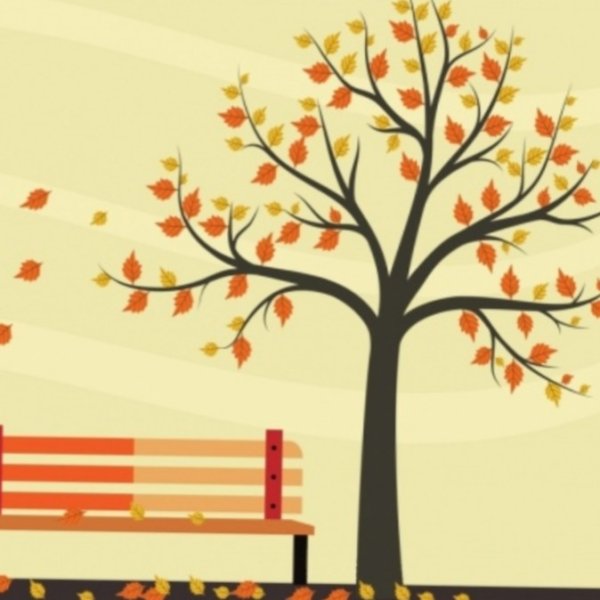 ![Осенний пейзаж с лавочкой]()
