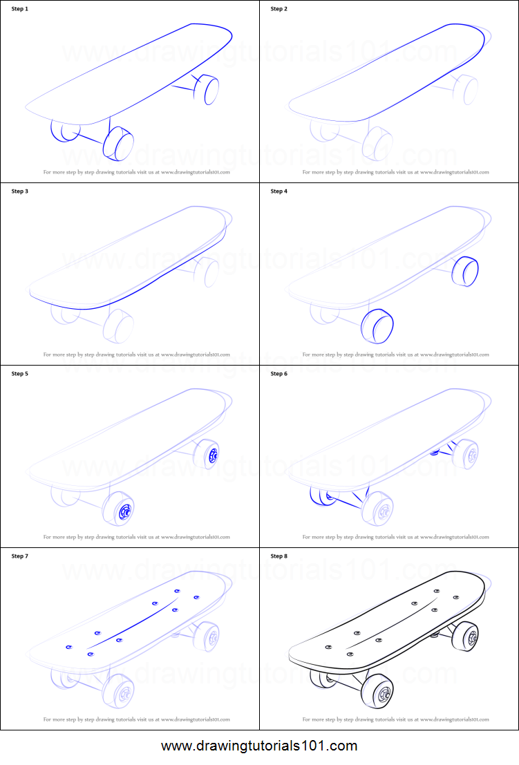 Поэтапное рисование скейта