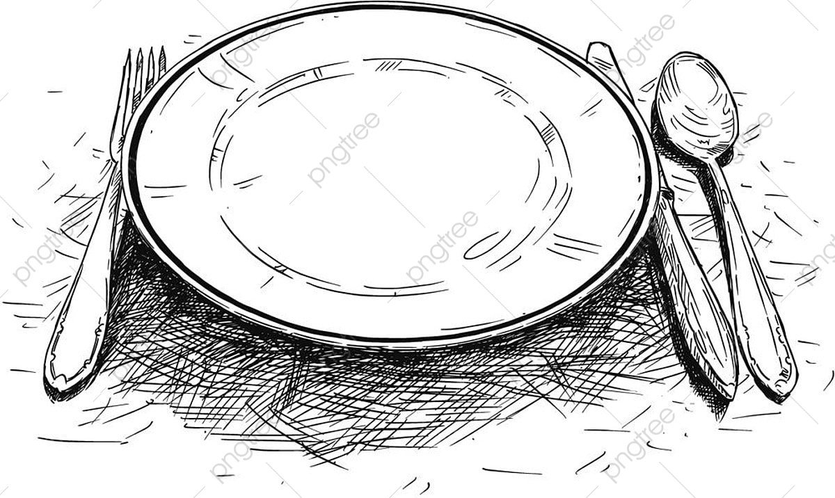 ![Скетч тарелки с вилкой и ножом]()