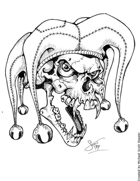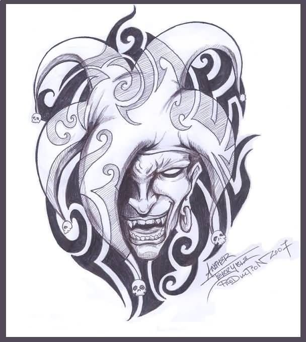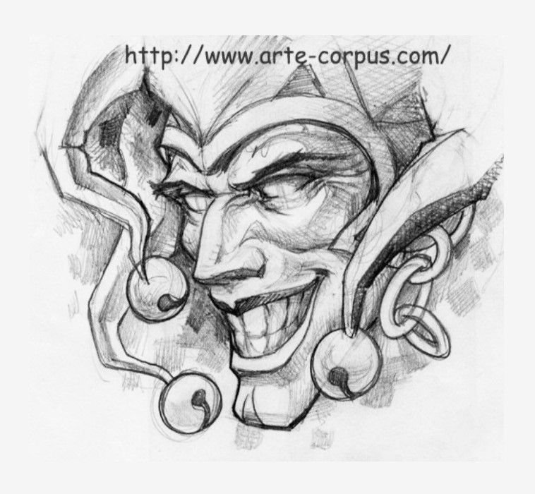 ![Злой Арлекин тату эскиз]()