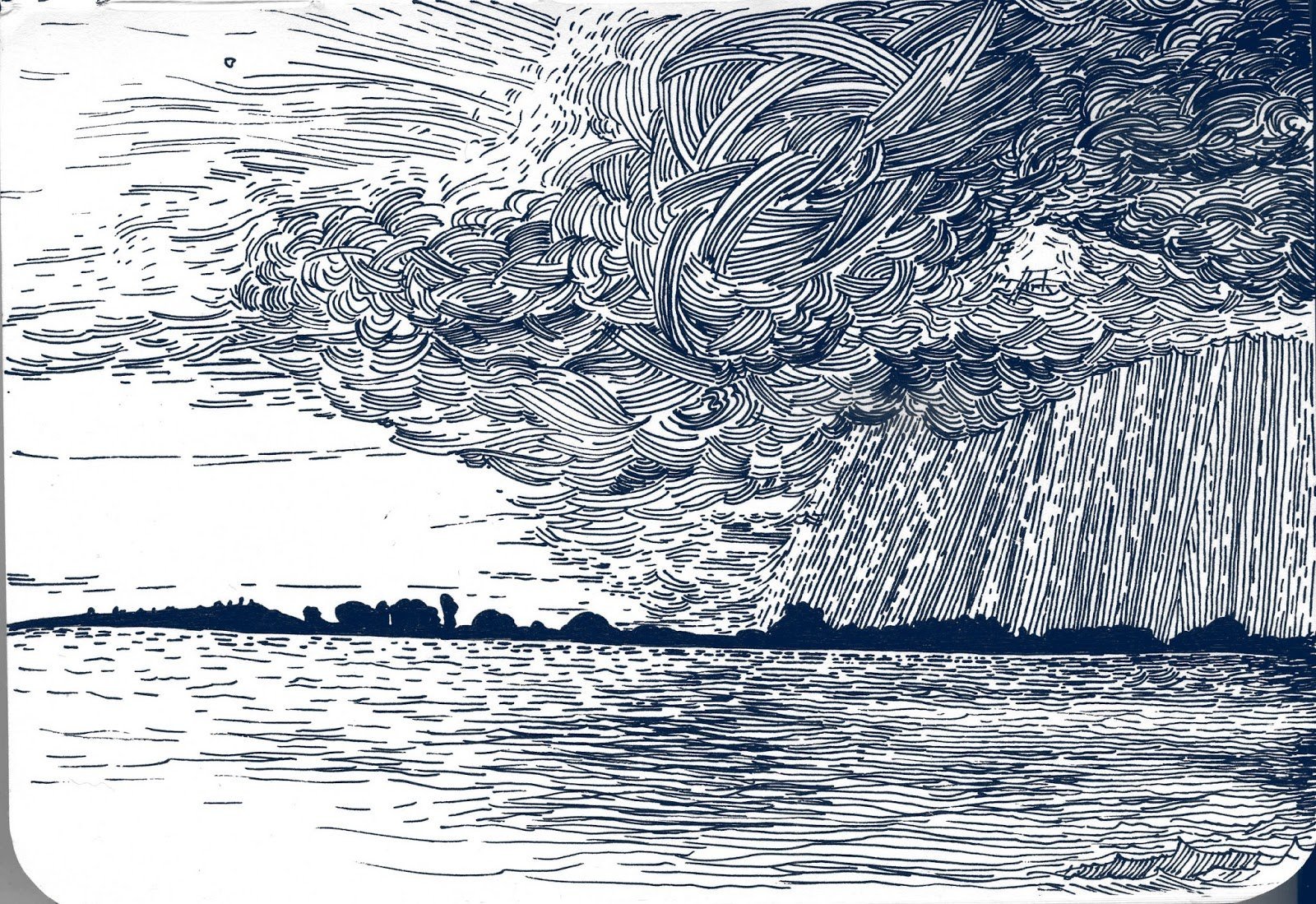 ![Море штриховка карандашом]()