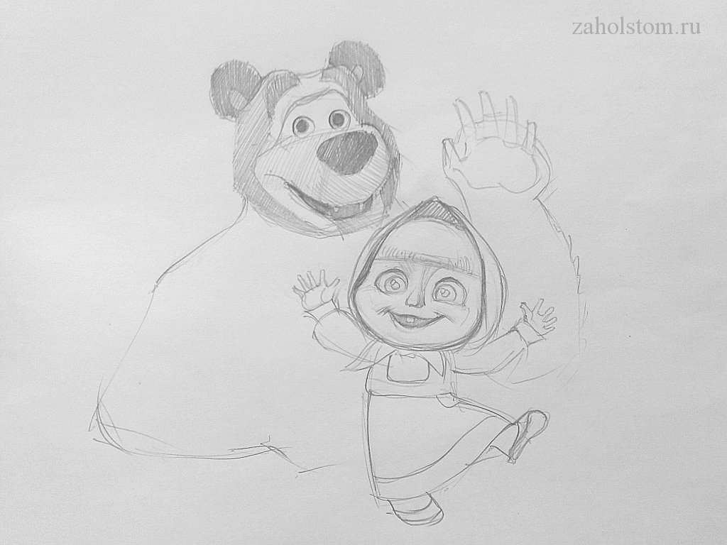 Маша и медведь рисунок карандашом