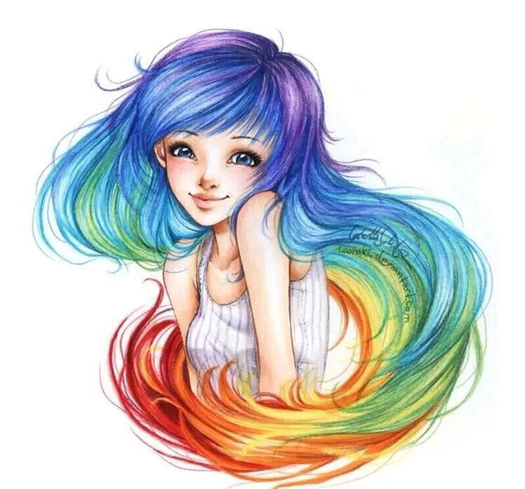 ![Девочка с радужными волосами]()