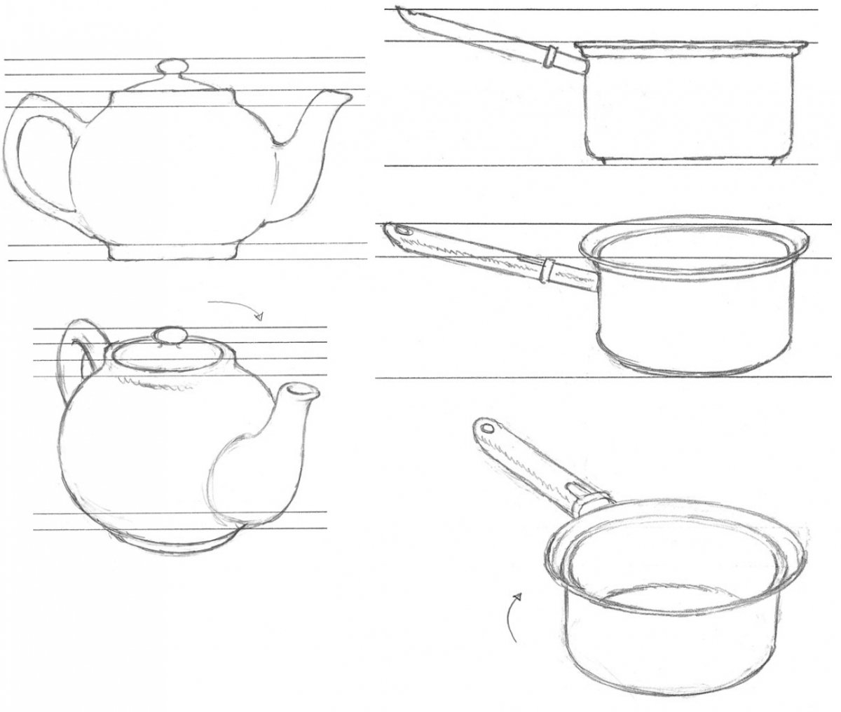Поэтапное рисование посуды