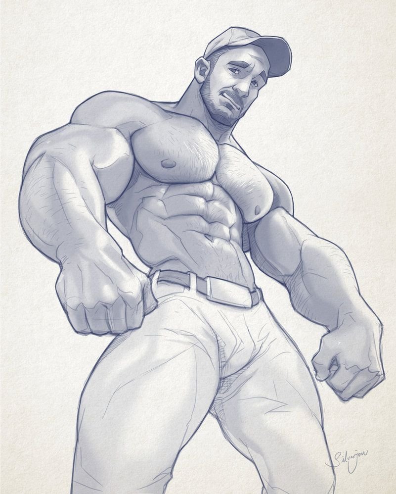 ![Мужской пресс карандашом]()