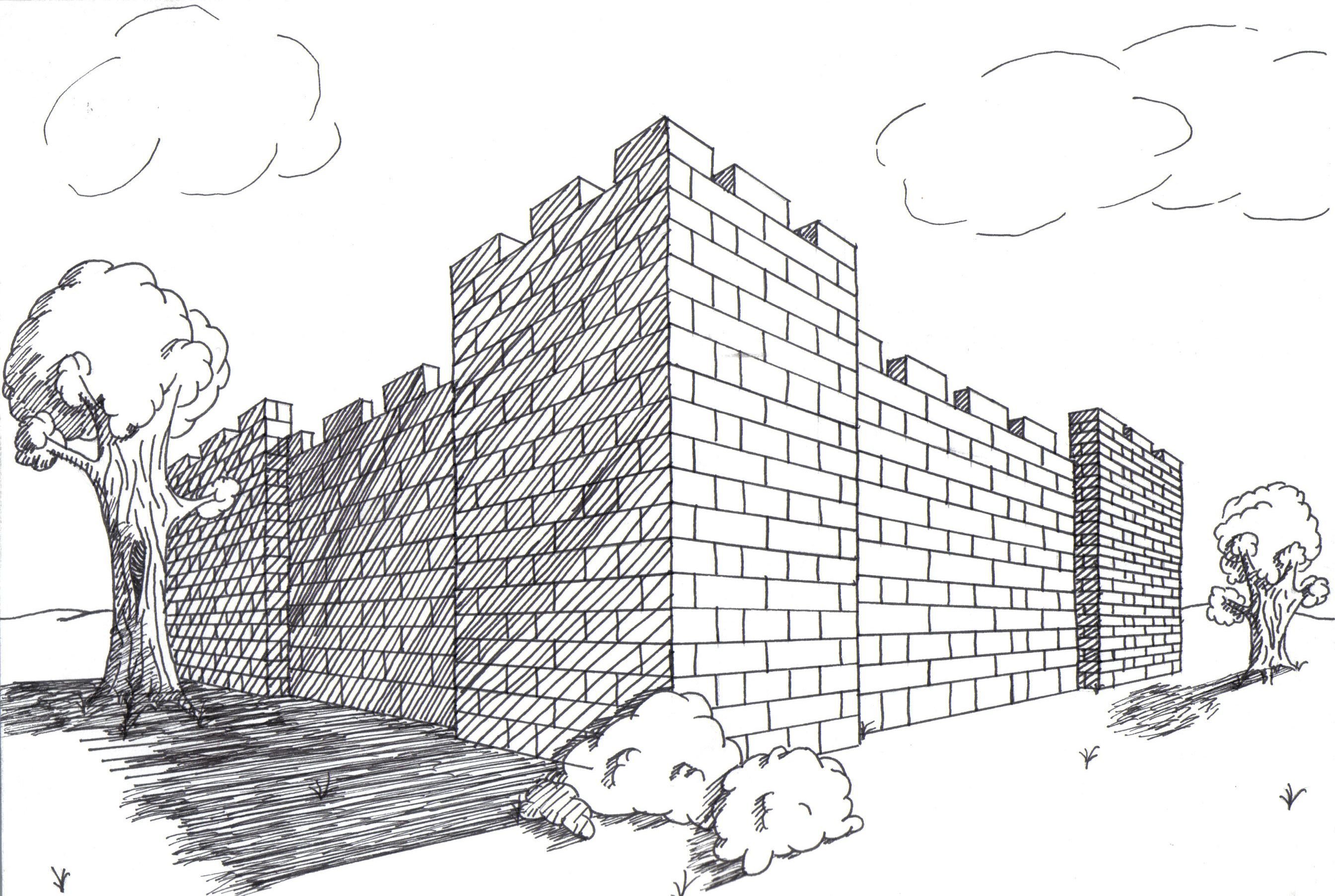![Кирпичная стена карандашом]()
