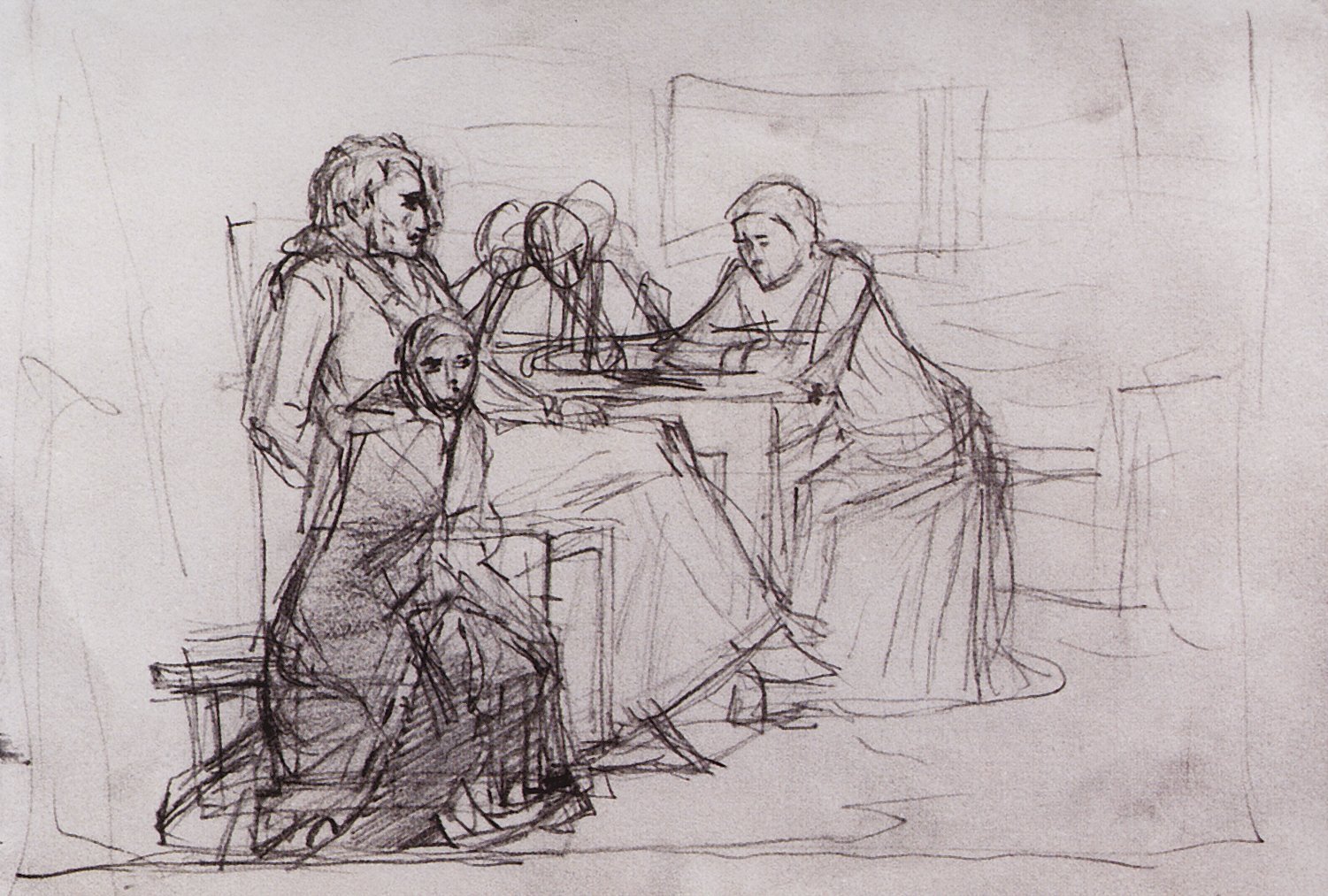 ![Бытовой Жанр в изобразительном искусстве карандашом]()