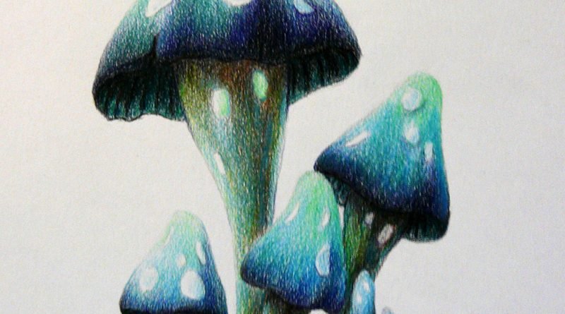 Грибы цветными карандашами