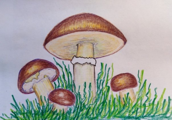 ![Грибы цветными карандашами]()