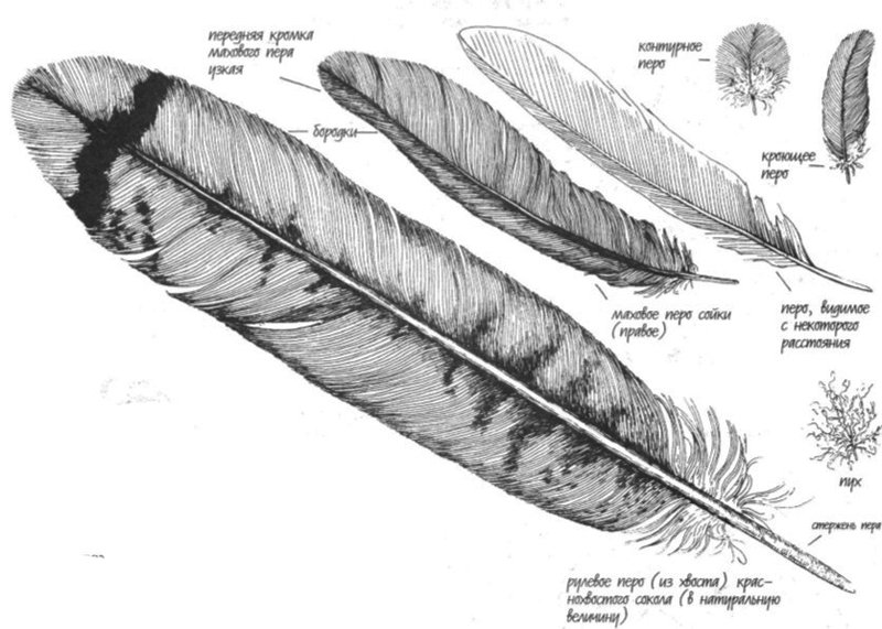 Зарисуйте перья птиц
