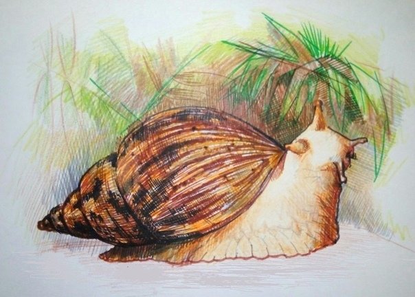 Улитка ахатина - удивительное создание природы. Ее прекрасный рисунок на раковине поражает воображение. Карандашом можно передать все нюансы и детали этого уникального рисунка, воссоздавая его на бумаге с невероятной точностью. Каждая спираль на раковине имеет свой особый узор и размер, что делает каждую улитку ахатину по-настоящему уникальной. Рисуя карандашом эту прекрасную улитку, можно раскрыть ее индивидуальность и естественную красоту, а также передать ее удивительные черты и характеристики.