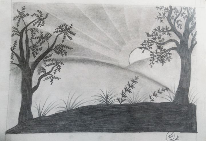 ![Пейзаж Графика карандаш солнце]()