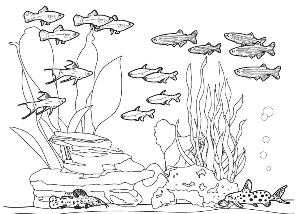 Раскраска аквариум с рыбками