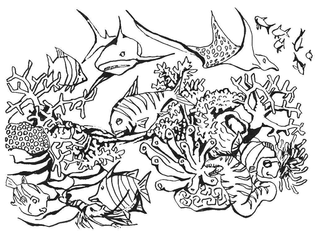![Коралловый риф раскраска]()