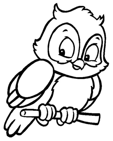 ![Сова на ветке раскраска]()