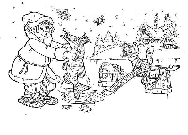 Раскраска по сказке по щучьему велению