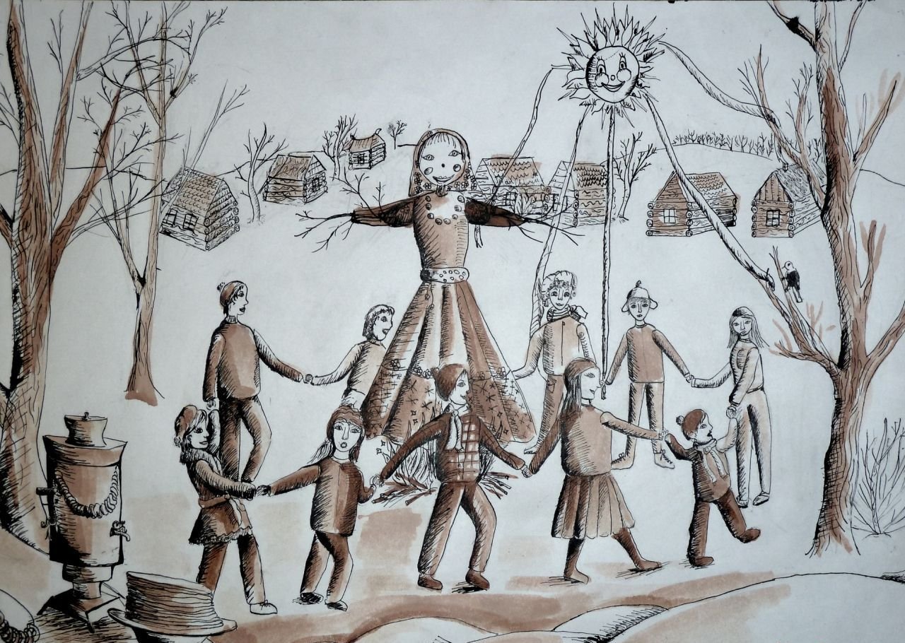 ![Масленица рисунок чучело карандашом (44 фото)]()