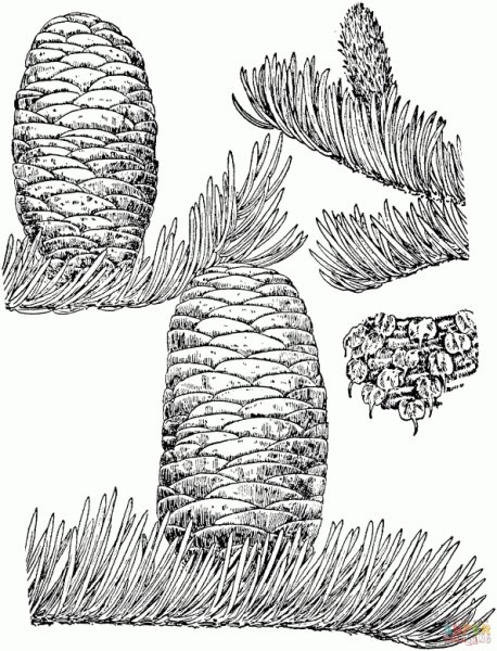 ![Ветка кедра раскраска]()