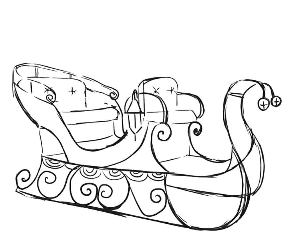 ![Сани Деда Мороза для рисования]()