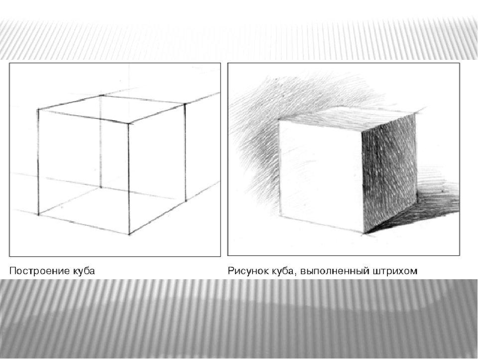 Рисунок гипсового Куба расположенного ниже уровня глаз