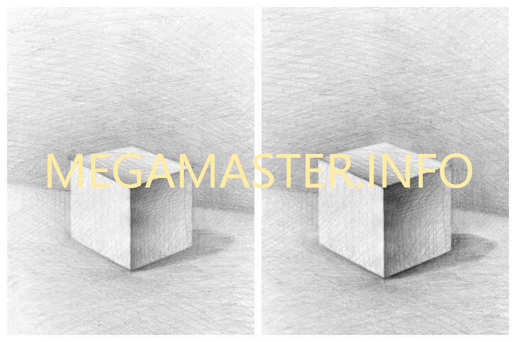 ![Рисунок гипсового Куба расположенного ниже уровня глаз]()