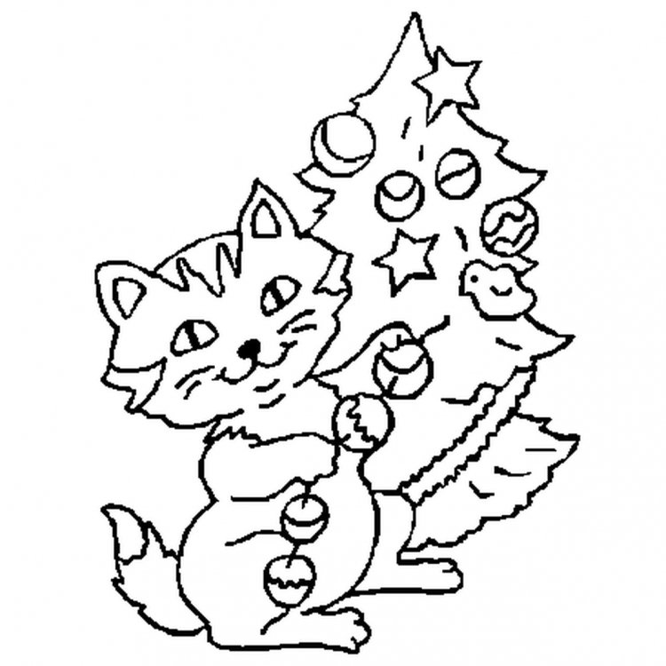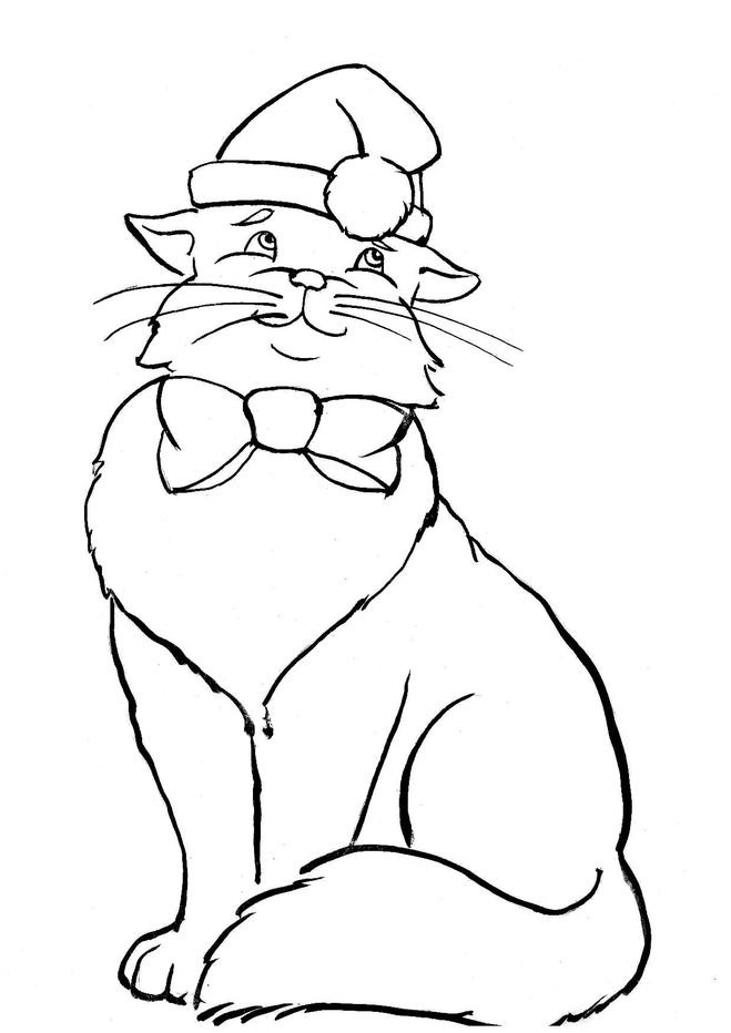 Новогодняя кошка раскраска
