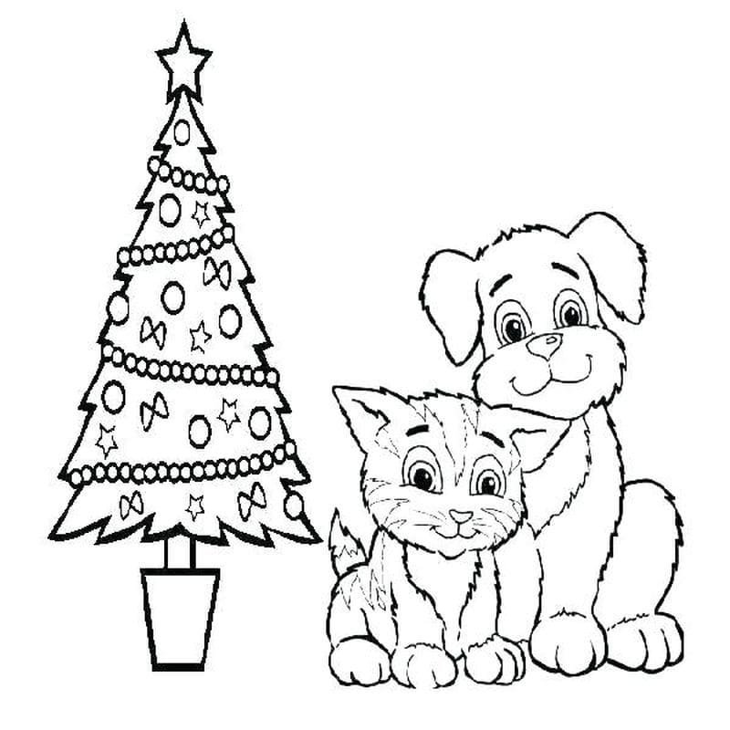 Раскраски новогодние котята