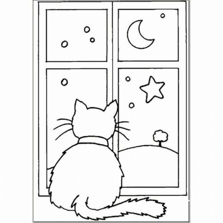 Кошка на окошке раскраска