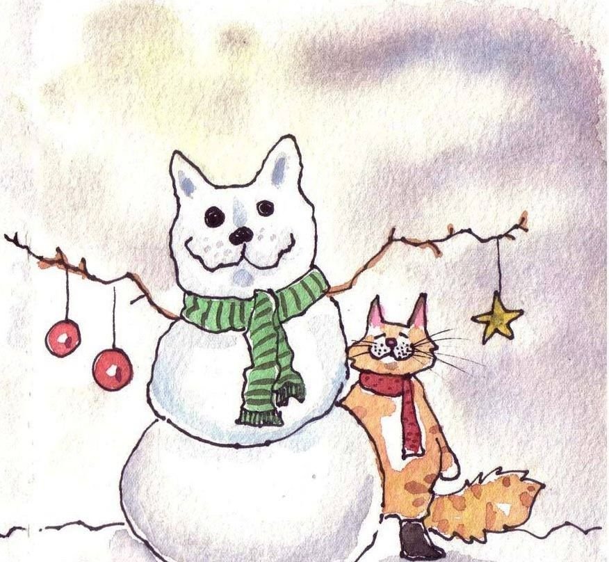 Новогодний котик рисунок