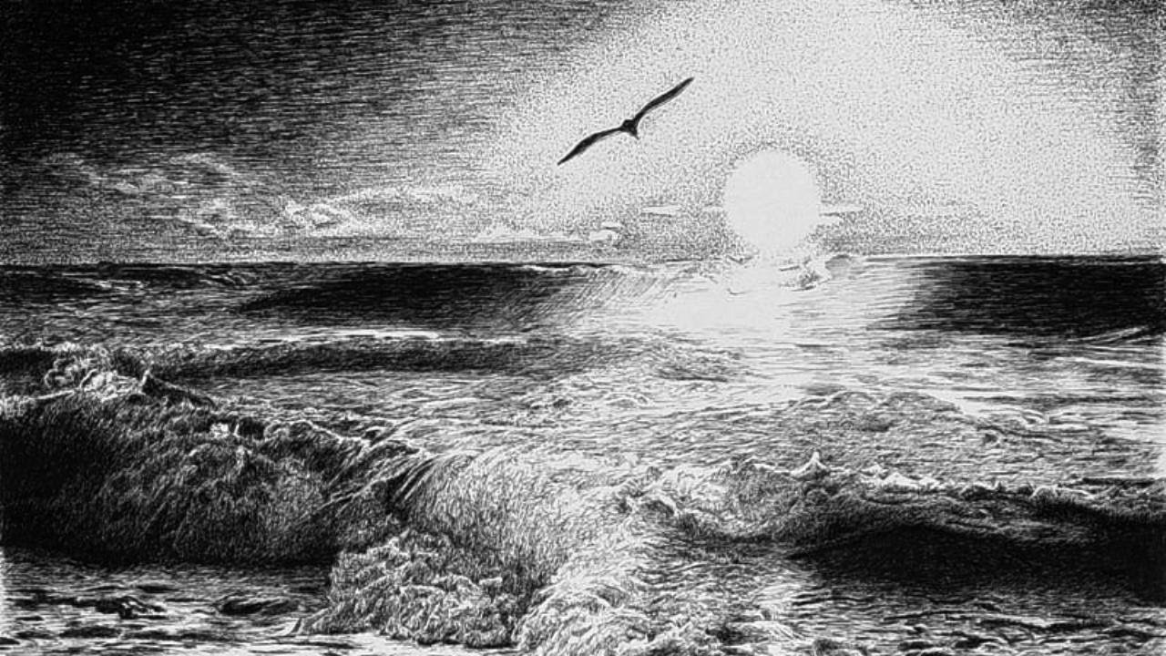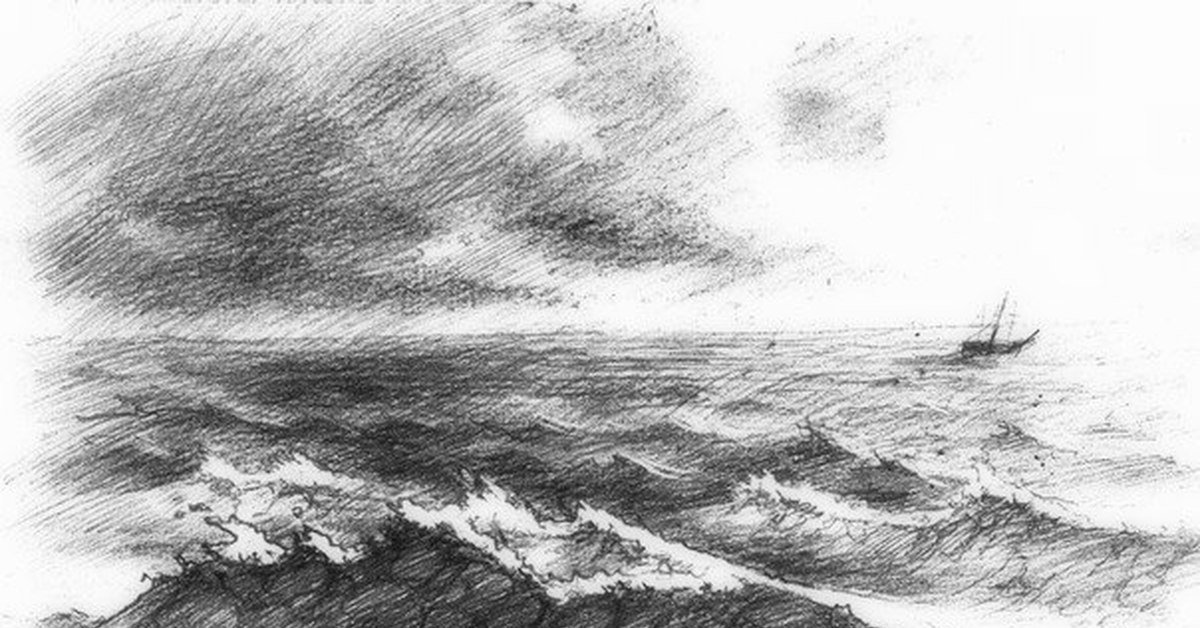 Нарисовать море черно белое