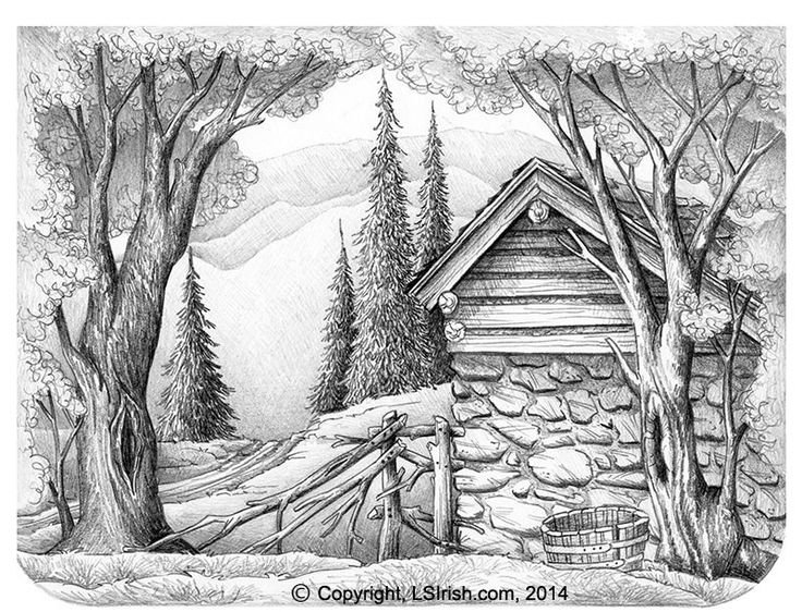 Дом в горах рисунок карандашом