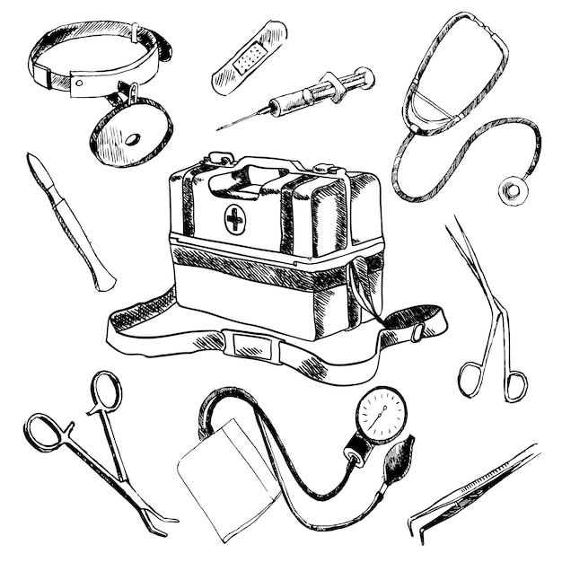 ![Медицинские предметы эскиз]()
