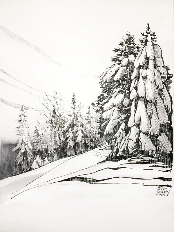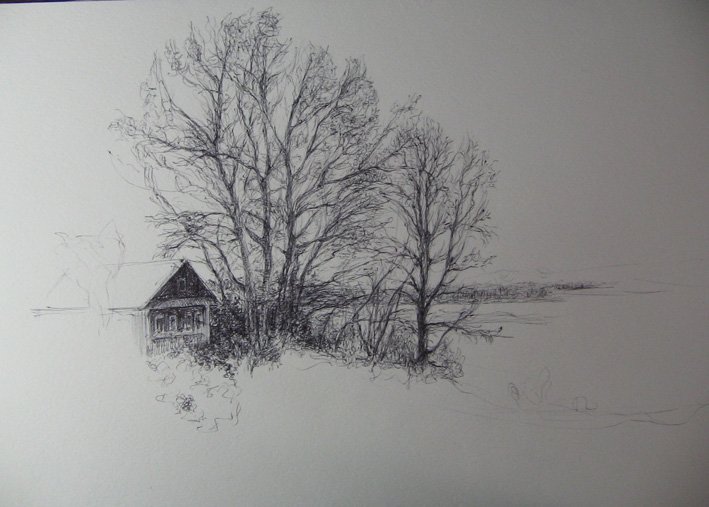 ![Зимний пейзаж набросок]()