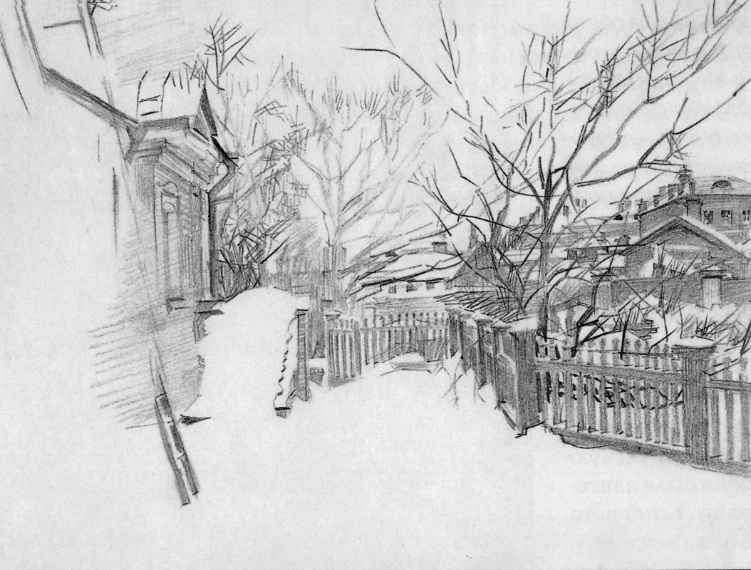 ![Зимние зарисовки карандашом]()