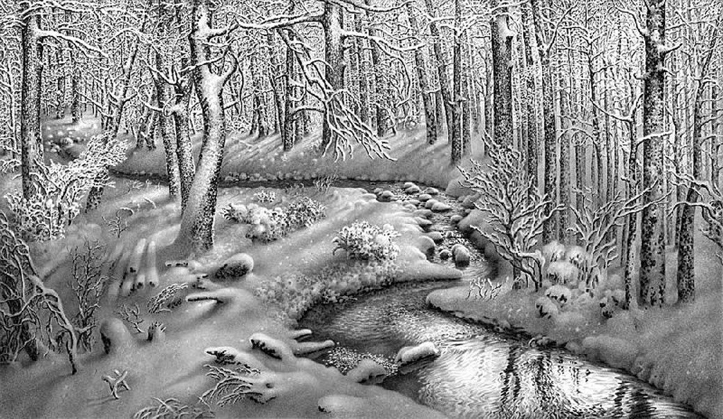 ![Зимний пейзаж карандашом]()
