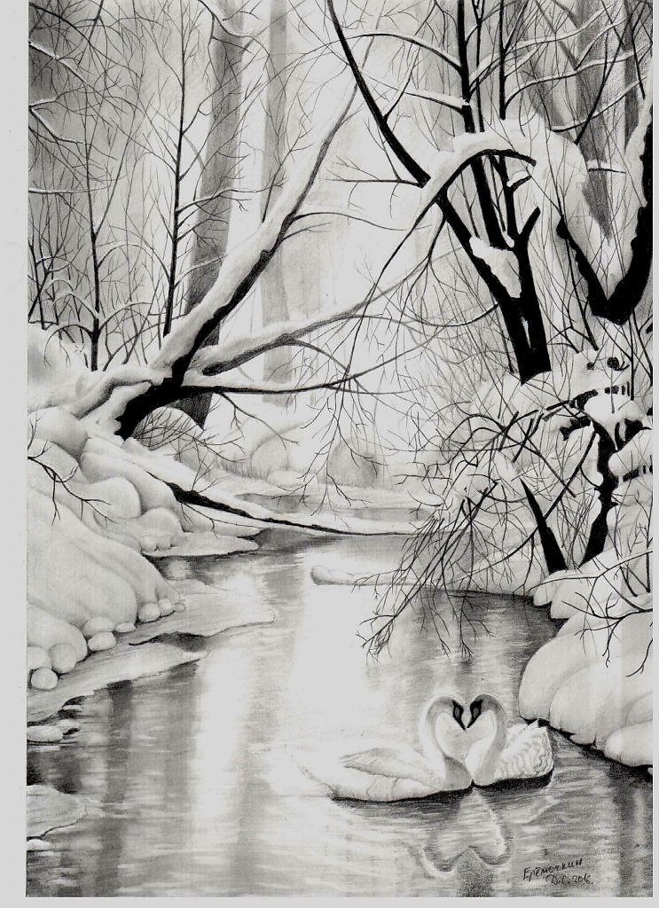 Зимний пейзаж карандашом для срисовки