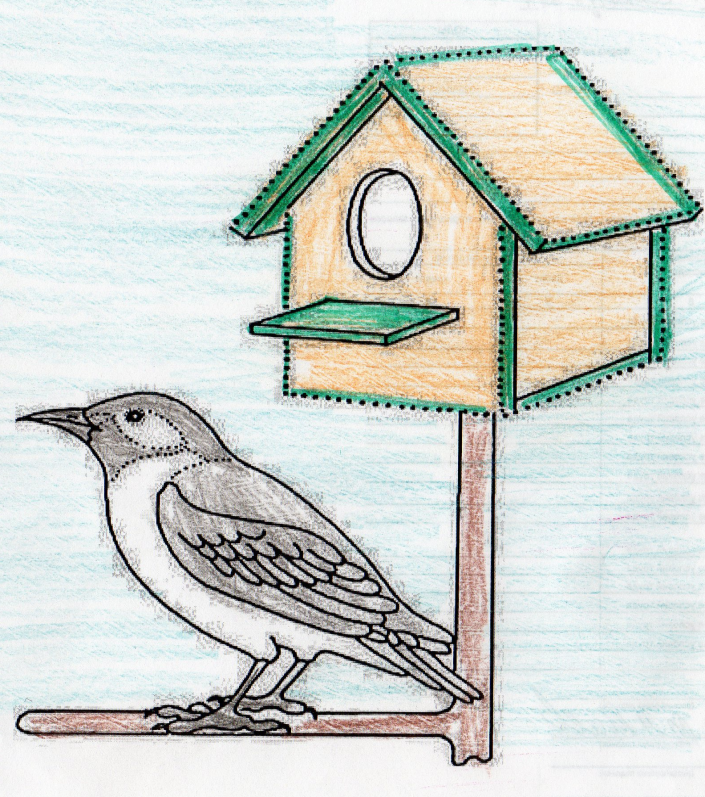 ![Кормушка для птиц карандашом]()