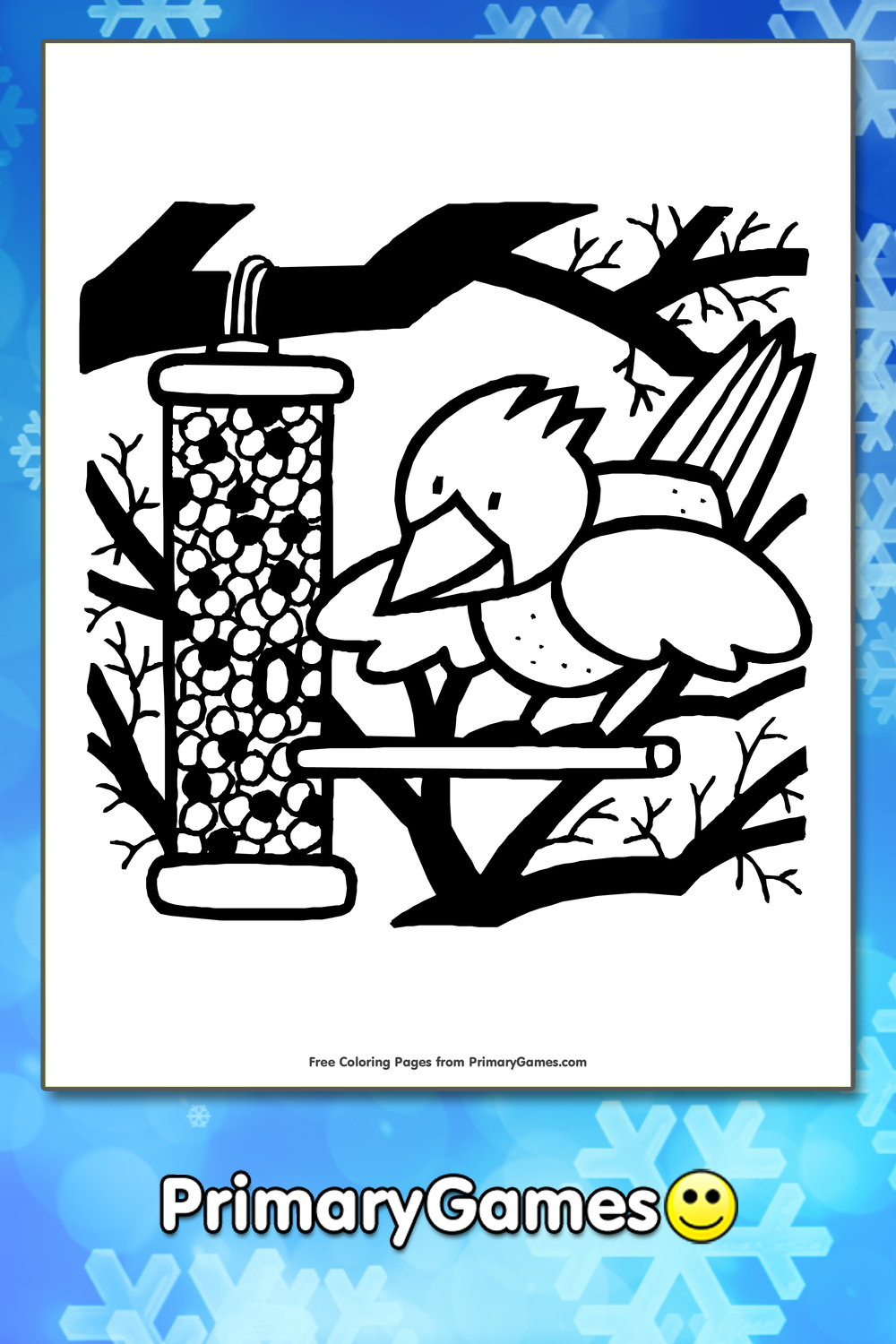 ![Раскраска птицы зимой у кормушки]()