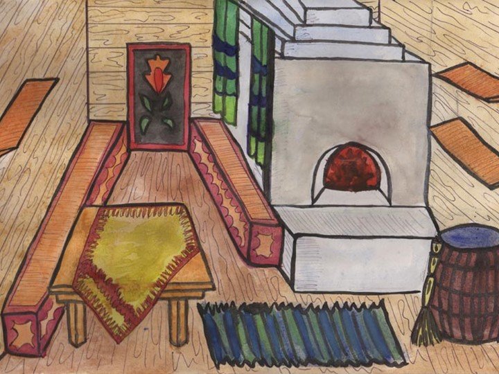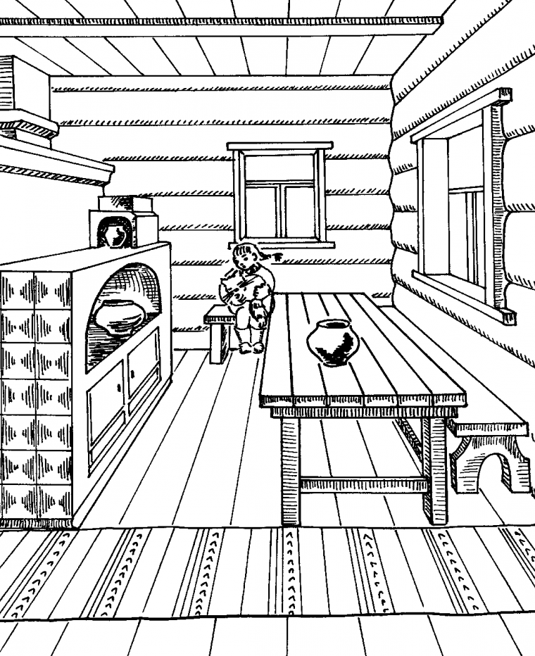 Интерьер русской избы рисунки