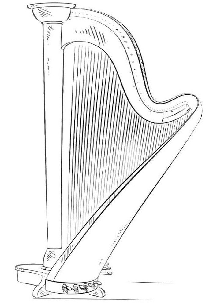 Раскраска арфа музыкальный инструмент