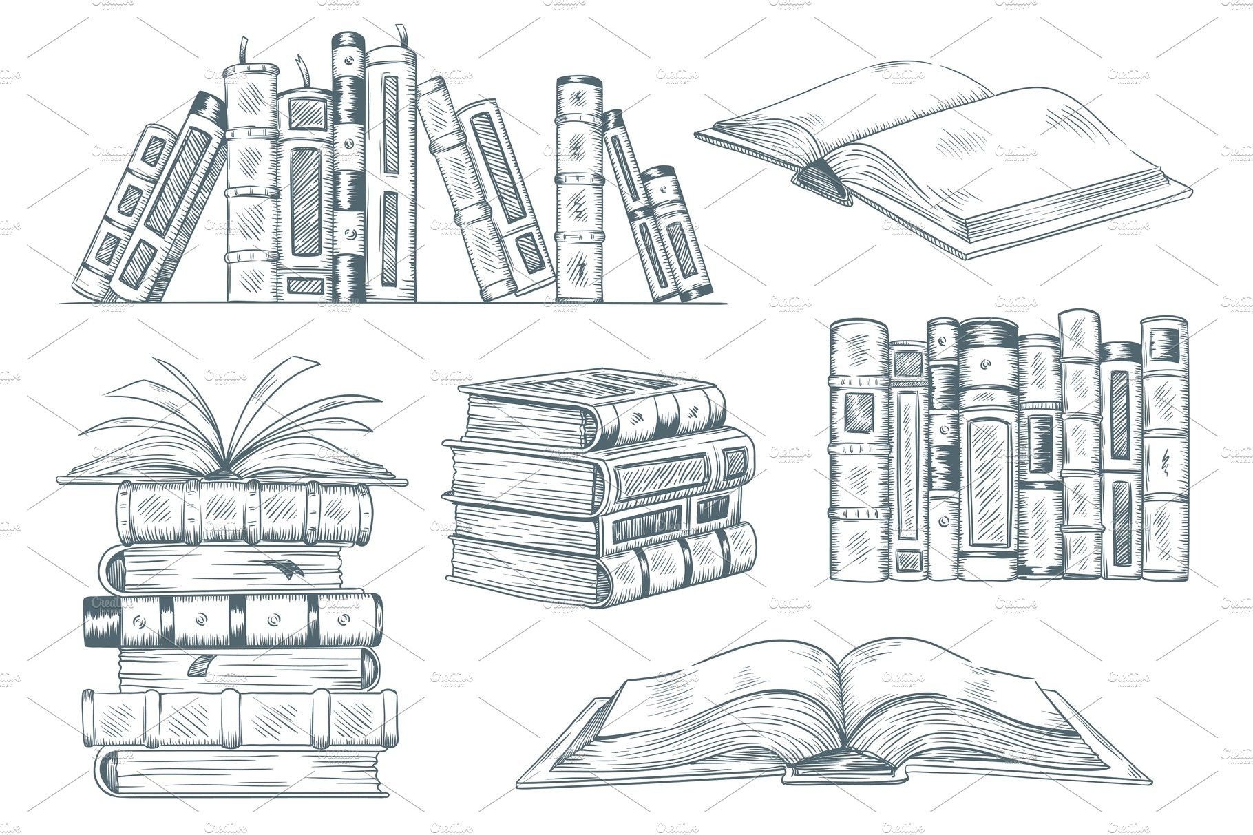 ![Полка с книгами рисунок]()