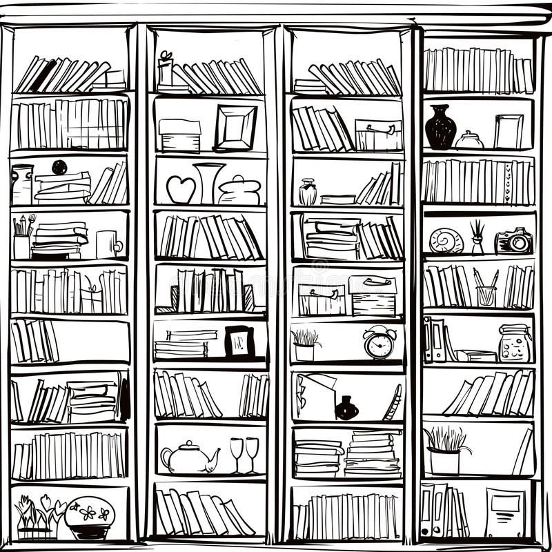 ![Книжная полка чб]()