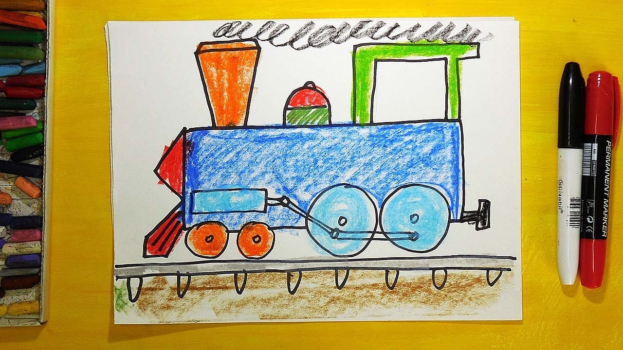 ![Рисование с детьми поезд]()