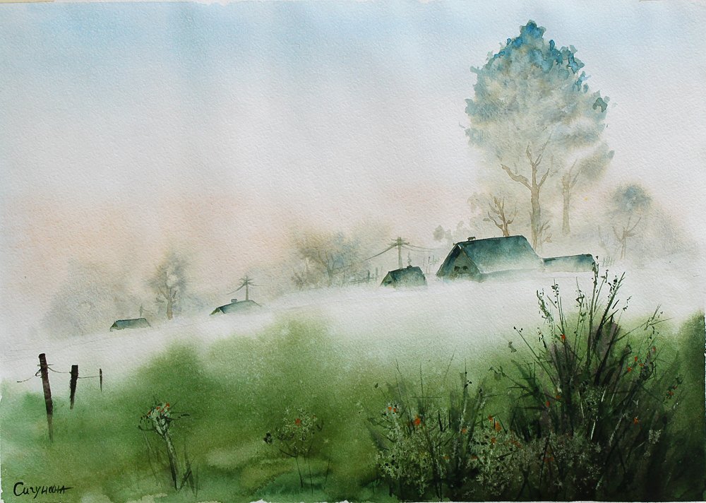 ![Мрачный пейзаж акварелью]()