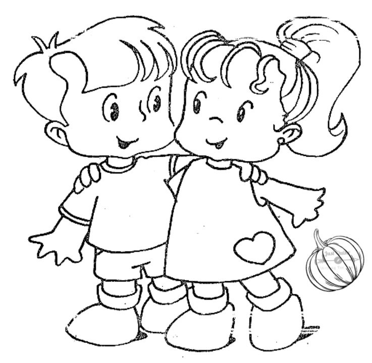 ![Мальчик и девочка для срисовки]()
