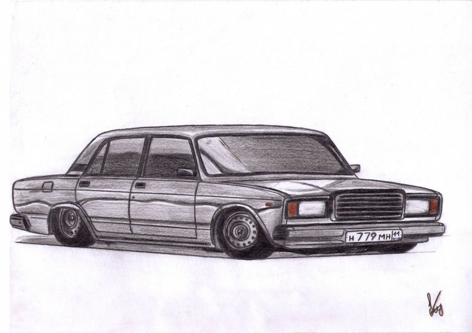 ![ВАЗ[ 2107 рисунок тюнингованный]()