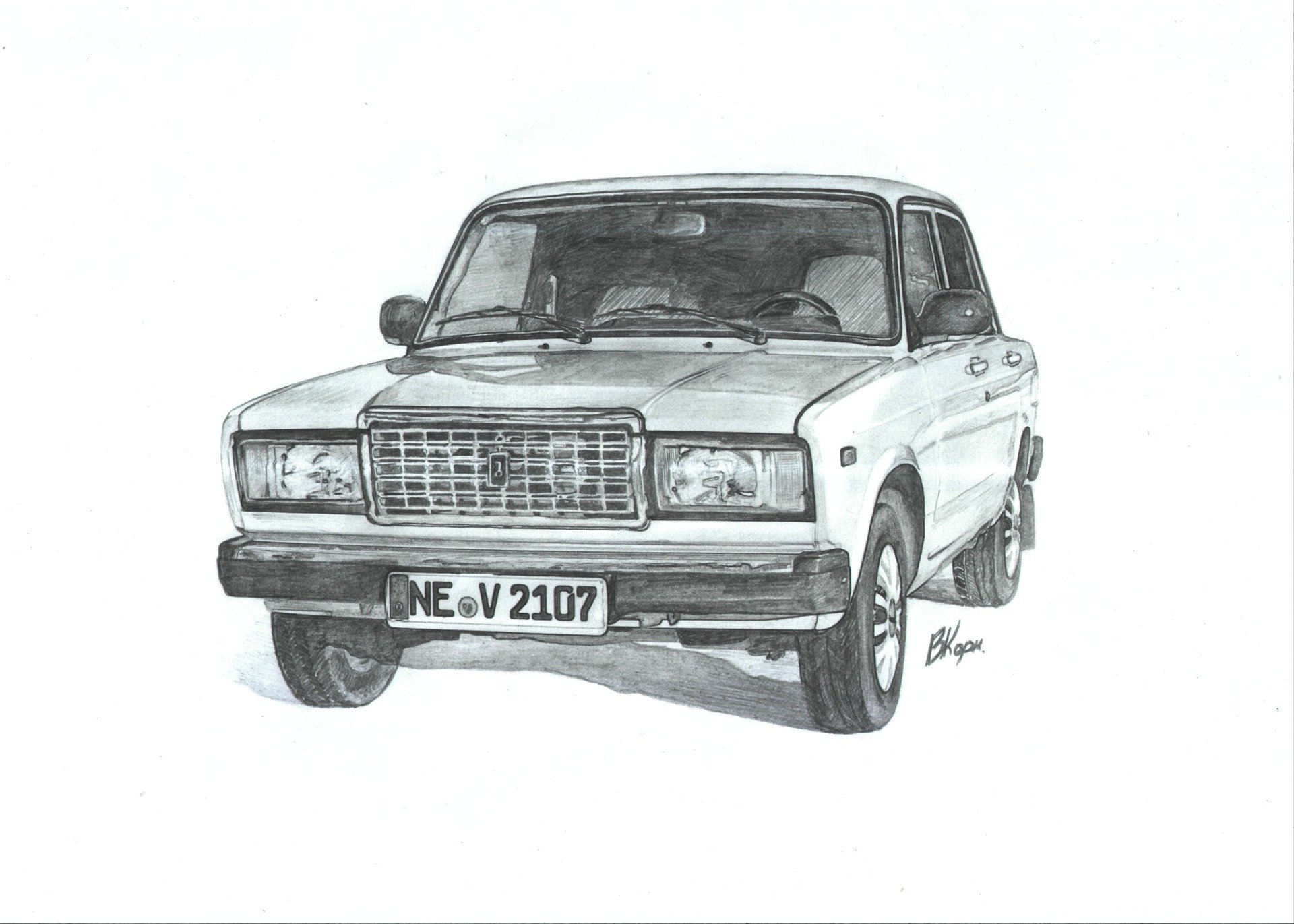 ![ВАЗ 2107 рисунок карандашом спереди]()